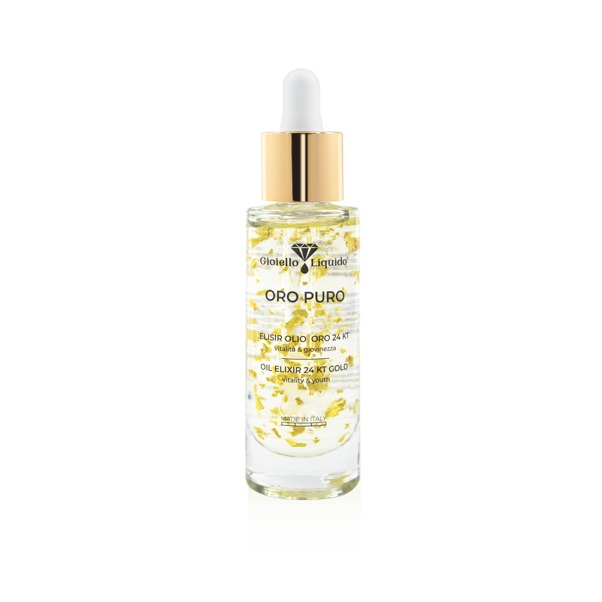 Ένα εξαιρετικό έλαιο για πρόσωπο και σώμα, όπου ο χρυσός προσθέτει πολυτέλεια στο δέρμα, αφήνοντάς το λείο και ενυδατωμένο. Ο χρυσός, χάρη στις αντιγηραντικές του ιδιότητες, τις αποτοξινωτικές του αρετές και την ικανότητά του να αποκαθιστά τις ελαστικές ίνες του δέρματος, είναι ιδιαίτερα κατάλληλος για βαθιά αναγέννηση των επιθηλιακών κυττάρων. Το έλαιο Jojoba συμβάλλει στη μαλακτικότητα και την ελαστικότητα του δέρματος, χάρη στην υψηλή περιεκτικότητα σε κεραμίδια. Η βιταμίνη E αποκαθιστά την ικανότητα του δέρματος να συγκρατεί την υγρασία, καταπολεμώντας την αφυδάτωση.